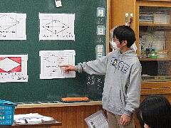 5校時に5年生の算数で研究授業を行いました。北原先生が、ひし形の面積の求め方を考えさせる授業を公開してくれました。子どもたちは、今まで学習した方法を使って、色々な求め方を考え、発表しました。