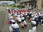 校長からプール掃除を頑張ってくれた慰労と、プールを楽しく安全に利用するための3つの「あ」について話しました。「安心しない」、「あわれない」、「あなどらない」の3つです。その後、橋本教務主任から、具体的な注意事項の説明がありました。最後に、児童代表として6年生の佐藤弘大さんが、プールの安全と自分の目標に向かって頑張るよう、呼びかけてくれました。