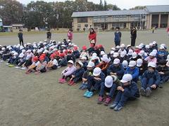 竜巻や不審者対応などを合わせると、今年度6回目となります。業間で遊んでいるときに地震が発生し、一時避難しているときに火災が発生したという想定で実施しました。