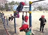 1年生の休み時間は、とても楽しそうです。ブランコ・鉄棒・ジャングルジムが人気でした。中には、6年生の体育の授業を見学している1年生もいました。
