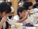 6月は、1・2年生がランチルームで給食をとる番です。そこで、1年生が今日から、初めてのランチルーム使用となりました。嬉しそうでした。