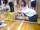 3年生が、ゴムのはたらきで動く車を作り、ふれあい広場でどのくらい進か試していました。どうしたら遠くまで車を走らせることができるか考えながら・・・・。