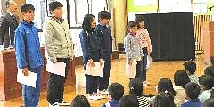 業間に、3学期の学級委員の任命式を行いました。各学級委員を中心にみんなが協力し合って、学年のまとめをしっかり行うことを確認しました。