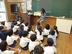 1年生は池尻事務長が「パパ お月さま とって」、2年生は三武さんが「ふくろのなかには なにがある?」「きみはしっている」、3年生は大貫さんが「雨のにおい 星の声」「くつやのねこ」、4年生は皆川さんが「さるすべりの花」「くつやのねこ」、5年生は仲山さんが「鬼の首引き」、6年生は小松さんが「紙芝居 さらやしきのおきく」を読んでくださいました。心にしみるお話を、いつもありがとうございます。