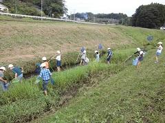生活科の学習で、2年生が桜川にすむ生きもの調査をしました。