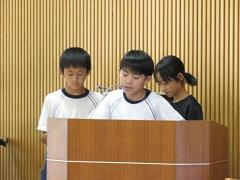 その後、町内各校代表の意見発表がありました。本校からは5年生の大根田琴音さんが「生きるということ」という題で、すばらしい発表をしてくれました。家業のデイサービスを利用されている方々の言葉や自分の事故体験から、「命」、そして「生きる」と言うことを真剣に考えたすばらしい発表でした。