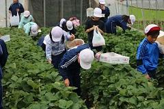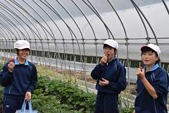 神野さんから上手なイチゴの摘み方を教えていただき、早速、学年ごとに指定されたビニルハウスでイチゴ摘みが始まりました。大きいイチゴを目指す子、赤いイチゴを探す子、とにかくたくさん摘む子、食べ最優先の子と様々でしたが、みんなたくさんお土産ができました。どの家庭でも楽しいイチゴパーティーになったのではないでしょうか。