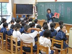 1年生は長嶺さんと森さんが「めっきら もっきら どおんどおん」、2年生は小野寺さんと薄根洋恵さんが「こおいむしのこそだて」「だるまちゃんとてんぐちゃん」、3年生は早川さんが「ホッキョクグマと南極ペンギン」「まないたにりょうりをあげないこと」「ぬけちゃった」、4年生は神野さんが「みえた からだのなか」「にゅうどうぐも」、5年生は薄根夏代さんが「おばけのてんぷら」「はのはのはなし」、6年生は平野さんが「1ねん1くみ1ばんえらい」を読んでくださいました。4年生の「みえた からだのなか」は絵が透けて体の中が見える絵本で、子どもたちから歓声が上がっていました。