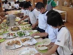 そして、給食は楽しみにしていたバイキング給食でした。子どもたちは、唐揚げやデザートなどを笑顔で食べていました。みんな、残さずに食べきれる量を、バランス良く取っていました。臨海でもマナーを守って上手に食事ができることと思います。