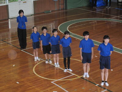 体育館にて技能競技の種目の演技を披露しました。