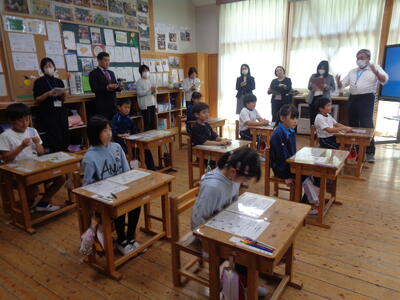 この後、5年生は3・4時間目、里山保全の取組について総合的な時間の学習で続谷地区に出かけました。