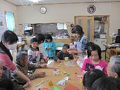 おじいちゃんやおばあちゃん一人一人に自作のメダルを首にかけてあげたり、握手をしたりすると、本当に嬉しそうでした。貴重な体験となりました。