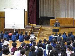 お話の会に続いて、3月5日から2年担任の永山友理恵教諭が産前産後休暇に入るため、全校児童に、しばし別れのあいさつがありました。児童・職員全員で、元気な赤ちゃんが無事に生まれてきてくれることを願いました。その後、後任に2年生担任となる、髙山成美学習指導助手(3月5日からは教諭)からも、あいさつがありました。3月いっぱいですが、よろしくお願いいたします。