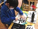 今週も大山先生に来校いただき、5・6年生書道の指導をしていただきました。教室で説明を聞いた後、ワークスペースで練習しました。以下の写真は、6年生のものです。