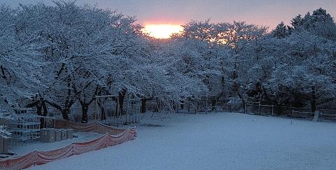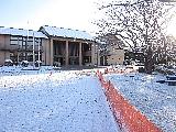 8日(土)の大雪のため、雪景色の中の小貝小です。