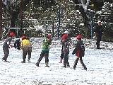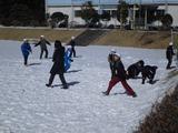8日(土)の大雪で降り積もった雪の中の校庭では、子どもたちは雪遊びを思いっきり楽しんでいました。でも、なわとびの検定も真っ最中です。みんなが雪遊びに夢中になっている中なわとびの練習に励んでいる姿も見られました。