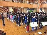 業間に音楽集会を行いました。今回は6年生の発表で、「ふるさと」「風を切って」の2曲の演奏でした。また、金管バンド部の演奏「聖者の行進」「会いたかった」もありました。そして最後は全校生で「翼をください」を合唱しました。