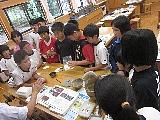 埋蔵文化センターの職員3名の方を講師に招いて、6年生社会科の授業をしていただきました。身近な土器などを説明していただいた後、曲玉づくりを体験できました。