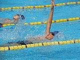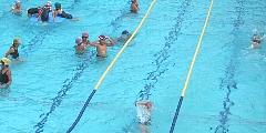 子どもたちはプールが遊ぶのが大好きです。しかし、2コースは8月4日の郡市水泳記録会に向けての練習を行っています。