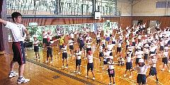 本日から運動会の練習がスタートしました。今回は、校庭に水たまりもあって、体育館で「ラジオ体操」の練習を行いました。