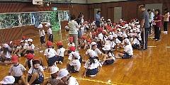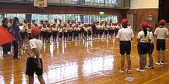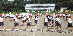 2回目の運動会の練習をしました。開・閉会の並び方と退場を簡単に行った後、「町民音頭」の並び方・踊り方を中心に練習しました。よく出来ました。