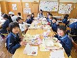 12月と1月生まれの児童23名と教職員3名の「お誕生給食会」がランチルームで行われました。その様子をお知らせします。