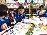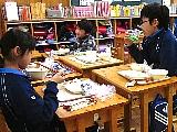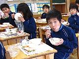 全国学校給食週間にちなんで、今週の給食は各県の郷土料理を楽しみました。本日は、明治22年に山形県のある私立小学校で最初に出された給食「おにぎり、焼き魚、たくあん・・」に近いメニューでした。低学年ほど、おにぎりを握るのに苦戦していました。