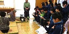 4名の講師の方にご協力いただき、6年生が茶道を体験しました。前半は、基本的な流れを見せていただきました。後半は、一人一人が実際に体験し、「和菓子が美味しかった」などと楽しんだいました。