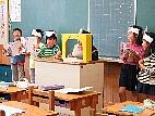 全児童を代表して6年生の綱川凛さんが、お礼の言葉を述べてくれました。ご指導頂いた、続谷駐在所の保々琢磨様、市貝町総務課鈴木宣夫様、交通指導員の大久保信雄様、大滝挌様、ありがとうございました。