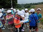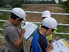 大きな声で出発のあいさつをして、元気に出かけました。今回は田野辺方面を探検に行きました。みんな、石河先生の説明を一生懸命にメモしていました。