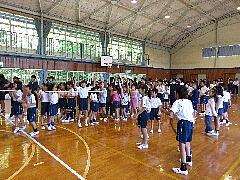 スクールバスの利用率が高い本校では、体力低下を防ぐことも大きな課題です。体育の授業だけでは足りないため、体育集会で計画的に5分間走を行っています。