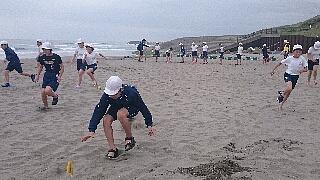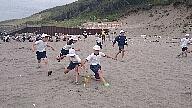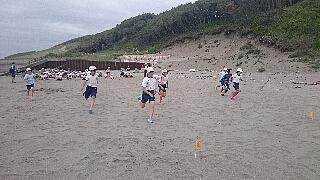 その後、結団式・入所式があり、午後は砂浜ウォークラリーを楽しみました。チェックポイントでは色々な課題が有り、フリスビーなどもありました。食事も美味しくいただきました。