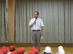 先日、登校指導を終えて戻ってくると、2年生の数名が死んでしまったザリガニのお墓をつくって手を合わせていました。優しい子たちだなと思って見ていると、他の子たちが、「校長先生これなんですか?」と気持ち悪そうに聞いてきました。見ると白いふにゃふにゃしたものが地面にありました。誰かが捨てたシップが雨を吸収し、ふやけたものでした。「シップだから心配いらないよ。」と言うと、一人の女の子が素手でそれをつかんで、「ゴミ箱に捨てて大丈夫ですか?」と聞いてきたので、大丈夫と答えると、すぐにゴミ箱に向かって走って行きました。さりげない行動ですが、なかなかできない事だと思います。とても感動しました。