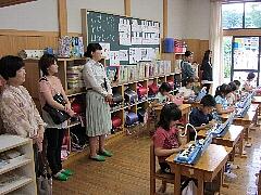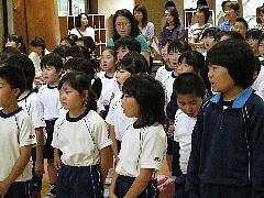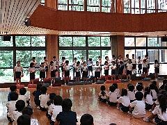 今回は3年生と4年生が演奏してくれました。最初に3年生が「ともだち」を上手に歌ってくれました。その後は、「海風の切手」を鍵盤ハーモニカとスズ、タンバリンで演奏してくれました。続いて4年生が、「歌の虹」をリコーダーで演奏してくれ、その後は、「色んな木の実」を様々なパーカッションを演奏しながら元気に歌ってくれました。最後は全員で、「気球に乗ってどこまでも」を合唱しました。自由参観にお出でいただいた保護者の皆さんも参加してくださいました。