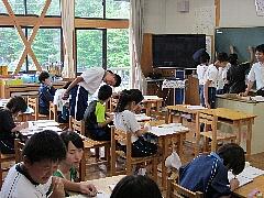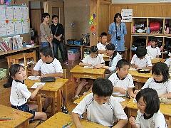 43名の保護者の皆様に授業をご覧いただきました。子どもたちは、いつも以上に張り切って学習していたようです。また、この日まで3名の中学生が社会体験活動に来てくれており、授業の補助に入ってくれました。