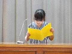 この後、1年生の石川帆空さん、2年生の岩村真依さん、3年生の谷口明日菜さん、4年生の小森匠真さん、5年生の平野翔大さん、6年生の佐藤弘大さんが今学期の反省と夏休みの抱負を、力強く述べてくれました。