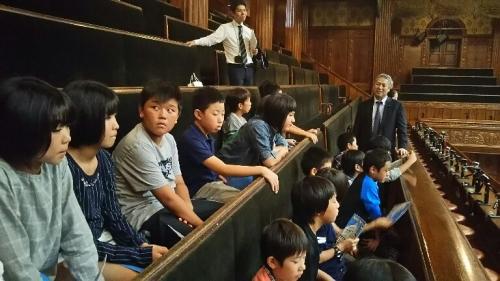 国会議事堂の見学を終えて、帰路に向かいました。衆議院本会議場の傍聴席に佐藤勉議員がお出でになり、お話しをしてくださいました。