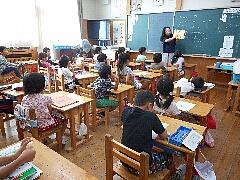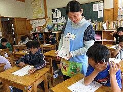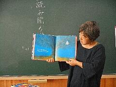 1年生は小森先生が「てのひらかいじゅう」、2年生は平野さんが、「1ねん1くみ 1ばんでっかい!!」、3年生は石河先生が「ちゅーちゅー」、4年生は神野さんが「ぼくのにいちゃんすごいやろ!」、5年生は小野寺さんが「ぼくのむ村にサーカスがきた」、6年生は早川さんが「ぴっぽのたび」を読んでくださいました。