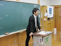 教室では、伊藤先生の小学校からの夢と歩んできた道のりの話を聞きました。夢は変えてもいい。でも、変えるまでは全力で頑張ること。夢を実現するには、計画を立て、実行し、反省をもとに計画を立て直すことが大切であると教えて頂きました。最後に、「自分が変われば世界が変わる」という言葉を贈って頂きました。