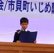また、5年生の関谷友宏さんが「心と心のつながり」と題して、意見発表をしてくれました。サッカーのゴールキーパーというポジションから、チームメートへのコーチングを通じて心と心のつながりの大切さに気づいたという体験を、立派に発表してくれました。