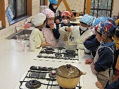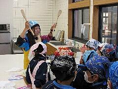 その後、実際に「ウガリ」と「ウジ」、「ごはん」を作って食べ比べました。ウガリやウジは、日本の団子に近い味でしたが、子どもたちの口には合わなかったようです。その理由を子どもたちは、食べ慣れていないからと、的確に答えていました。また、タンザニアでは調理用具をウガリ用とごはん用で使い分けており、どちらがウガリ用でどちらがご飯用か、という問いに、ウガリは混ぜるのでへらの形、ご飯はよそうので、くぼみがあると、近くにあったしゃもじを見て気づいた児童が答えていました。まさに、アクティブラーニングの場面を見ることができました。