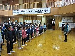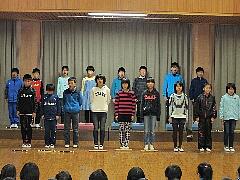 恒例の全校合唱は、「あわてんぼうのサンタクロース」でした。特に低学年の子どもたちが、口を大きく開いて元気に歌っている姿が印象的でした。