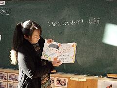 1年生は神野さんが「ふしぎなバス」と「どんぐりむらのぽんやさん」、2年生は小野寺さんが「みんなうんち」と「ホネホネさんのおしょうがつ」、3年生は早川さんが「天のかみさま金んつなください」、4年生は薄根さんが「サンタパスポート」と「お正月さんありがとう」、5年生は平野さんが「綱渡りの男」と「ふくろのなかにはなにがある?」と「ブタヤマさんたらブタヤマさん」を読んでくださいました。
