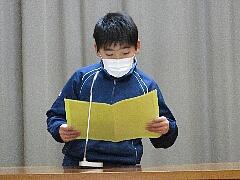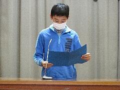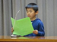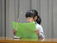 その後は、学年代表の意見発表でした。1年生は石川恭大さん、2年生は大畑希実さん、3年生は長谷川乃愛さん、4年生は秋田梨々子さん、5年生は山田航輝さん、6年生は薄根大登さんでした。6名の立派な発表は、後日、学校だよりでお知らせします。