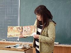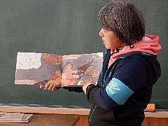 1年生は神野さんが「ふしぎなバス」と「どんぐりむらのぽんやさん」、2年生は小野寺さんが「みんなうんち」と「ホネホネさんのおしょうがつ」、3年生は早川さんが「天のかみさま金んつなください」、4年生は薄根さんが「サンタパスポート」と「お正月さんありがとう」、5年生は平野さんが「綱渡りの男」と「ふくろのなかにはなにがある?」と「ブタヤマさんたらブタヤマさん」を読んでくださいました。