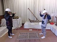 古い農具や民具を見たり触ったりして、子どもたちは少し昔の生活を体験しました。