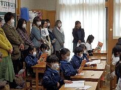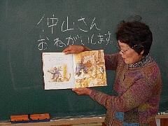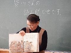 1年生は三武さんが、「なめれおん」と「うしはどこでも「も~!」」と「びんぼうがみとふくのかみ」を、2年生は大貫さんが、「平原の家から」と「いのちのまつり」を、3年生は皆川さんが、「つりがねどろぼう」と「はかまだれ」を、4年生は仲山さんが、「大どろぼうのくまさん」を、5年生は小松さんが、「読みがたり 栃木の昔話」と「イライラ ライオン」を、6年生は橋本先生が、「おじいちゃんのごくらくごくらく」と「せかいでいちばんつよい国」を読んでくださいました。