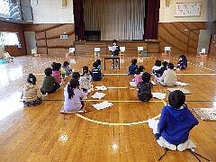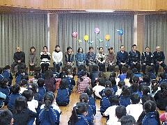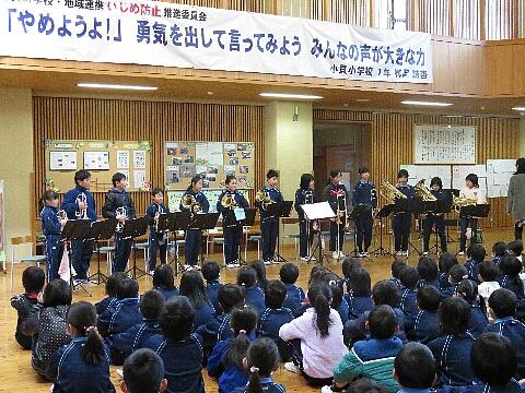 最終回を飾ってくれたのは金管バンドの皆さんでした。曲は「ひまわりの約束」でした。めざましい上達に、涙ぐむ先生もいるぐらいでした。子どもたちと永山教諭、髙山学習指導助手、岩間学習指導助手に拍手です。