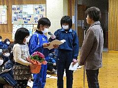 最初に、児童代表として6年生の河俣大輝さんがお礼の言葉を述べました。その後、お一人お一人に、子どもたちから感謝の手紙と花を手渡しました。