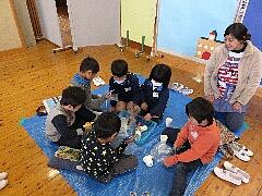 3校時に1年生が、杉山保育所、認定子ども園市貝たいよう幼稚園、市塙保育所の年長児童と交流学習を行いました。